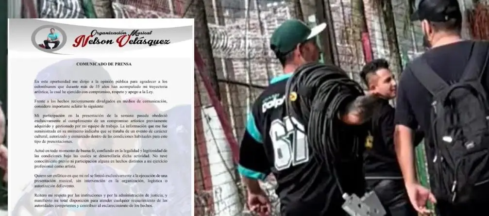Velásquez enfatizó que actuó confiando en la legalidad del evento y dejó claro que su papel se limitó exclusivamente a la presentación musical, sin intervenir en la organización, logística o permisos necesarios.